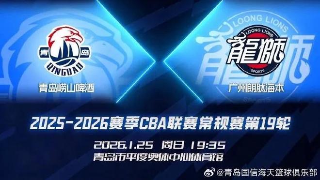 今晚19:35,2025-2026赛季CBA联赛常规赛第19轮,青岛崂山啤酒回到主场迎战广州朗肽海本。