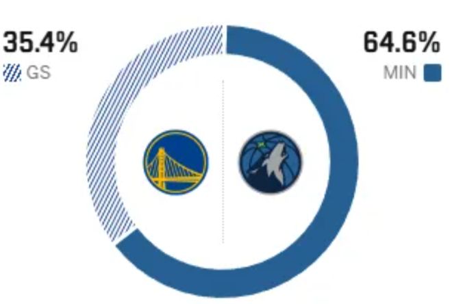 这是两队本赛季的第二次交手,上一次在勇士主场的交锋中,勇士以7分之差憾负,而此前的五次交手,勇士5战全败,劣势非常明显。赛前,美媒ESPN对本场比赛进行了胜率预测,勇士队胜率仅有35.4% ,劣势明显,森林狼队胜率则高达64.6% 。