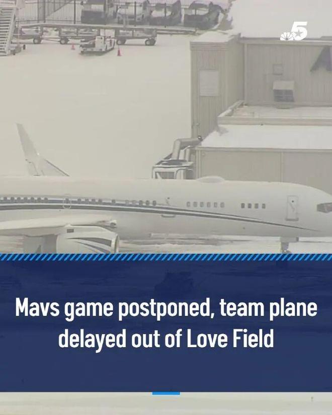 独行侠对雄鹿,是因为达拉斯当地恶劣天气,遭遇强降雪、冻雨及低温(最低达零下21度),球队在昨天赛后连采访都取消了,就为了马不停蹄提前奔赴机场赶下一场比赛,结果人算不如天算,球队虽提前抵达机场,还是因为天气原因无法起飞,全员被迫返回市区滞留,无法按时抵达密尔沃基,联盟宣布比赛推迟。