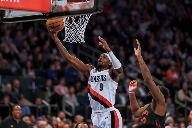 尼克斯队的布伦森上半场得到19分,哈特得到11分和3个篮板,唐斯得到5分和13个篮板;开拓者队的夏普得到17分,格兰特得到11分。