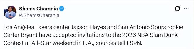近年来,NBA扣篮大赛的光彩已黯淡不少。北京时间1月30日,据名记Shams报道,今年四位参赛选手名单中的两人已经确定,他们分别是湖人中锋海斯和马刺侧翼卡特-布莱恩特。此前,三届扣篮王麦克朗已宣布不会参赛。