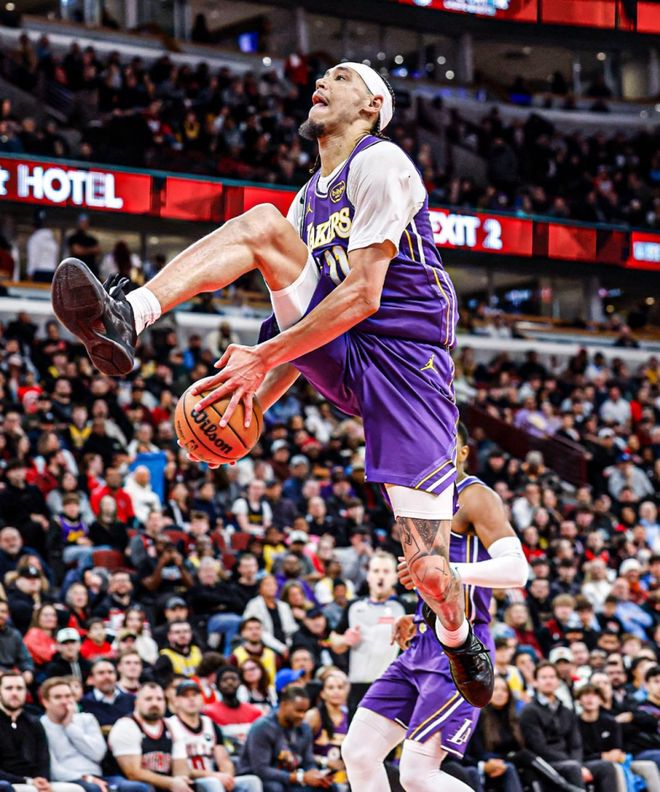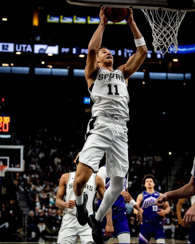 海斯身高2米13,扣篮时自带“高个球员特效”,效果好坏姑且不论。不久前他还在湖人队的一场常规赛中完成过一记胯下扣篮,显然拥有一套专业级别的扣篮动作库。海耶斯来自得克萨斯大学,在2019年NBA选秀中于首轮第8顺位被亚特兰大老鹰队选中。本赛季,海耶斯多数时间以替补身份为湖人出战,场均能贡献6.4分、3.9个篮板,投篮命中率更是高达惊人的77.3%。