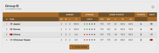 中国男篮与日本队、韩国队、中国台北队同处B组。截至本场赛前,中国男篮排名小组第三。