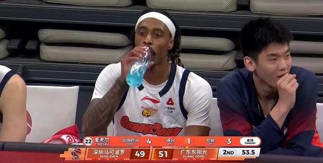 奎因上半场三分球6中2,次节独得13分半场16分2板5助,多次上演暴扣,是广东队外线大腿,萨姆纳9分3板,麦考尔状态低迷,防守态度很好,但进攻表现稀碎,太想证明自己,反而打得挣扎(陈家政依旧是因为一次犯错被杜锋弃用)。