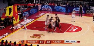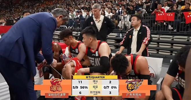 第四节深圳防守强度升级,王浩然+周鹏的锋线组合防守效果不错,让广东队完全突不进去,大多数时间内只能靠造犯规罚球上分;