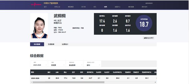 两次大伤严重影响了武桐桐的竞技状态,但本赛季她已状态复苏,得分、助攻均创近四个赛季新高。