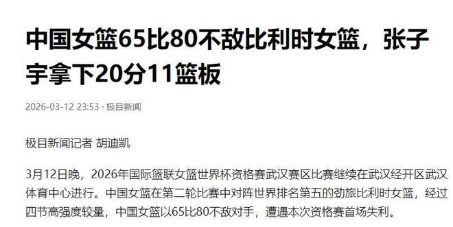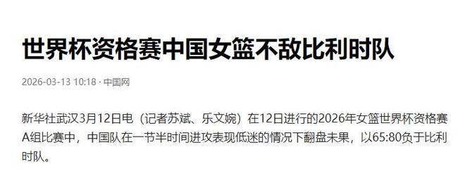 但在3月12日晚对战比利时的比赛中,中国女篮非常遗憾的输掉了比赛。
