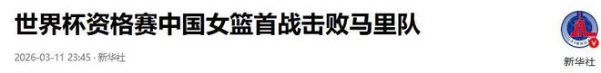参考文献:1.中工网:《女篮世界杯资格赛 中国队公布12人大名单》2026-03-102.新华社:《世界杯资格赛中国女篮首战击败马里队》2026-03-113.长江日报:《世界级篮球赛事在武汉鸣哨,中国女篮开门红》2026-03-12