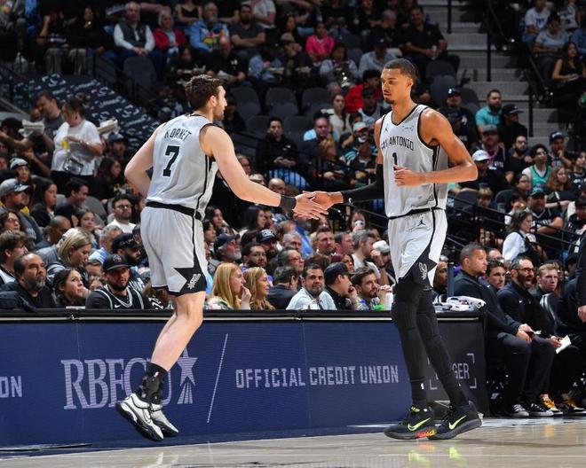 马刺:文班亚马34分12篮板3抢断,尚帕尼4记三分14分,瓦塞尔12分,福克斯23分7篮板3助攻。