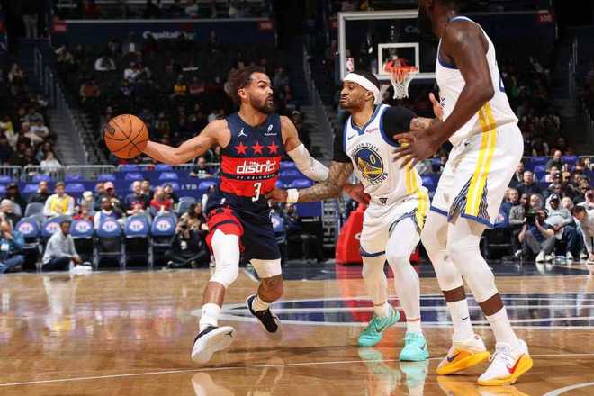 北京时间3月17日,NBA常规赛勇士客场对阵奇才,其中勇士是背靠背第二场。勇士在次节开局扩大17分优势,奇才一度追到仅差2分,勇士之后重新取得两位数领先优势。第三节卡林顿累计两T被驱逐,特雷-杨因为右大腿挫伤退赛,奇才末节顽强追到个位数差距仍功亏一篑,最终勇士125-117战胜奇才结束5连败,勇士取得对奇才交锋7连胜,奇才遭遇12连败,特雷-杨加盟复出全败。
