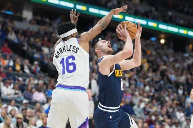掘金过去4场连赢猛龙、开拓者、太阳与独行侠收获4连胜,爵士过去3场连续主场输给76人、猛龙与奇才遭遇3连败,本赛季前两次交锋掘金均战胜爵士。本场爵士缺少马尔卡宁、努尔基奇、乔治等多位主力,首节前6分半钟双方紧咬比分,持续缠斗至掘金19-18领先。约基奇攻传结合扩大26-20领先,爵士追到差4分,掘金一波9-2攻势拉开比分,首节结束掘金37-26领先爵士。首节爵士24中11,其中三分8中0,掘金29中13,其中三分11中3,穆雷15+3+4与约基奇8+7+4。