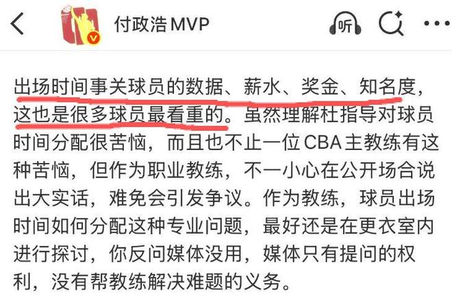 此前据媒体人付政浩透露,出场时间事关球员的数据、薪水、奖金、知名度,这也是很多球员最看重的。而张皓嘉就是杜锋姐姐杜梅经纪公司旗下的客户,所以本赛季杜锋如此器重张皓嘉,这也就解释得清楚了。