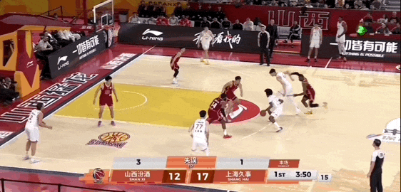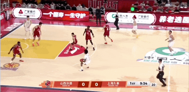 古德温火力全开,挡拆干拔三分打成后,山西队叫停比赛,此时上海队20-12领先于对手,其中古德温独得16分。