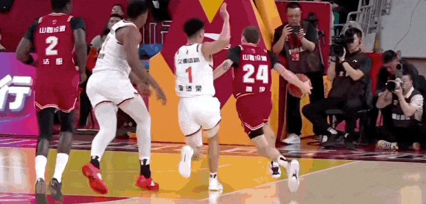 比赛还剩1分24秒,山西队落后5分,盖伊再度登场,弧顶处顶着古德温,强行扔三分命中,凭一己之力让比赛悬念再起。