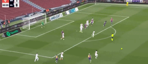 伤停补时阶段,拉什福德定位球直接打门,罗曼飞身扑出,孔德扫到后点,亚马尔近距离推射竟然打偏!