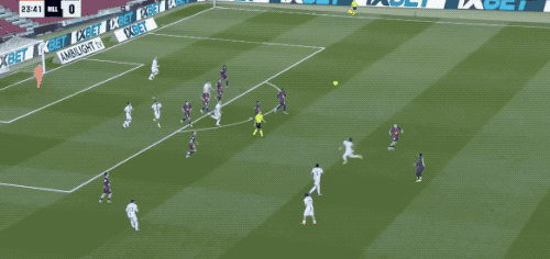 1分钟后,巴萨完成了一个无限接近破门的进球,拉什福德的远射力量十足,皮球几乎是擦着立柱稍稍偏出。