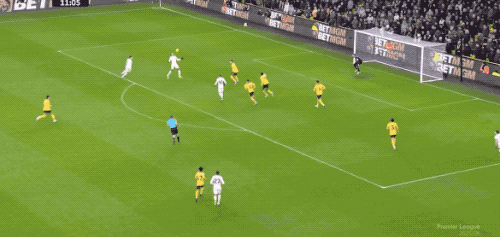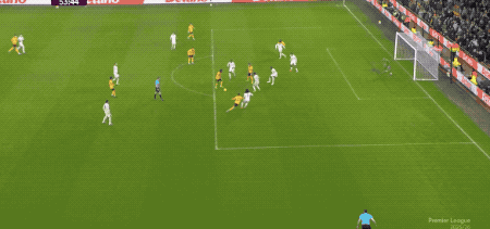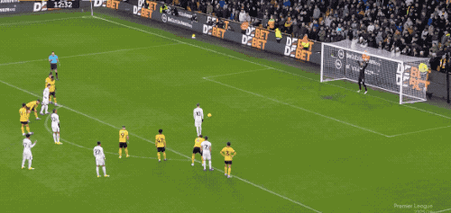 第53分钟,马内的挑射击中门框,狼队获得角球,阿洛克达尔潇洒转身射门,为狼队扳回一城。