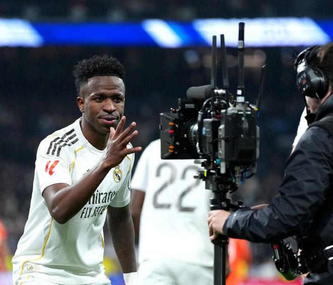 在姆巴佩没有登场的情况下,皇马在伯纳乌碾压了皇家社会,维尼修斯两度造点,并且都亲自主罚命中,贡萨洛加西亚和巴尔韦德也都有进球入账,帮助皇马4-1大胜皇家社会,豪取西甲8连胜登顶。