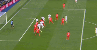 第4分钟,卡马文加犯规送给对手一个定位球,索莱尔脚后跟一磕,奥亚萨瓦尔跟上爆射,擦着左侧立柱偏出,皇马逃过一劫。
