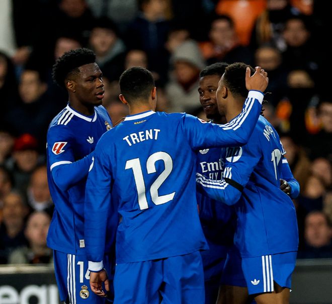 - 2026年02月15日 先赛暂登顶!皇马4-1皇社 维尼修斯两度造点+点射巴尔韦德破门