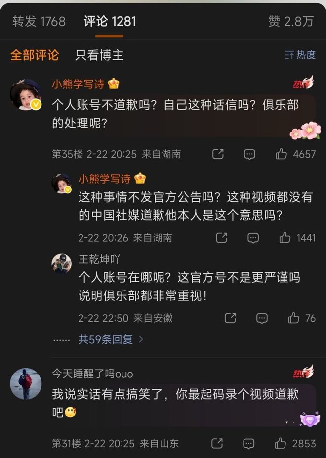 皇马的道歉,是微博特供道歉!