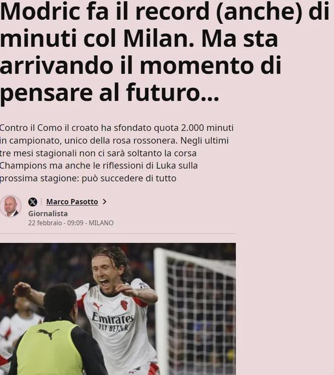 报道称,莫德里奇的未来尚不确定,因为米兰还拥有这名40岁老将的延长一年合同条款,并且红黑军团也希望留住克罗地亚人,但意媒表示,只有在莫德里奇同样希望留队的情况下,他们才会选择激活延长条款。
