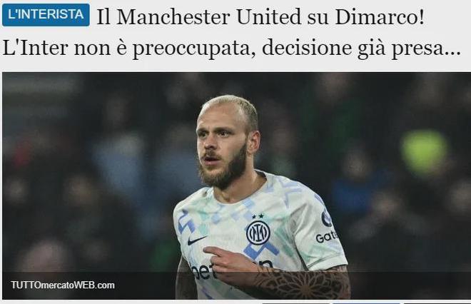 报道称,曼联愿意为28岁的迪马尔科支付5000万欧元的转会费,但国米明确告知红魔,这名边路多面手是非卖品。