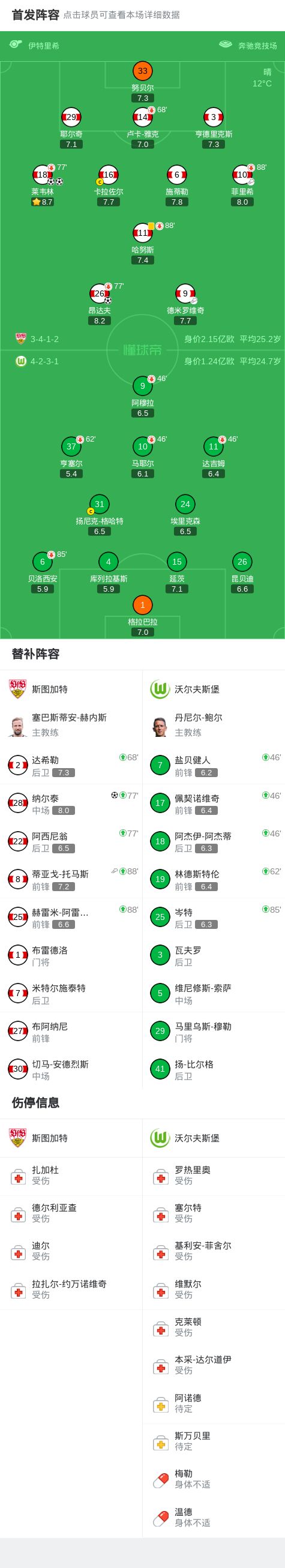 北京时间3月1日德国足球顶级联赛 联赛 第24轮,斯图加特主场对阵沃尔夫斯堡。斯图加特昂达夫破门,莱韦林梅开二度,纳尔泰破门。最终比分斯图加特 4-0 沃尔夫斯堡。