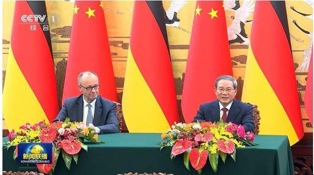 德国总理默茨、中国国务院总理李强共同见证签约仪式 图:总台《新闻联播》