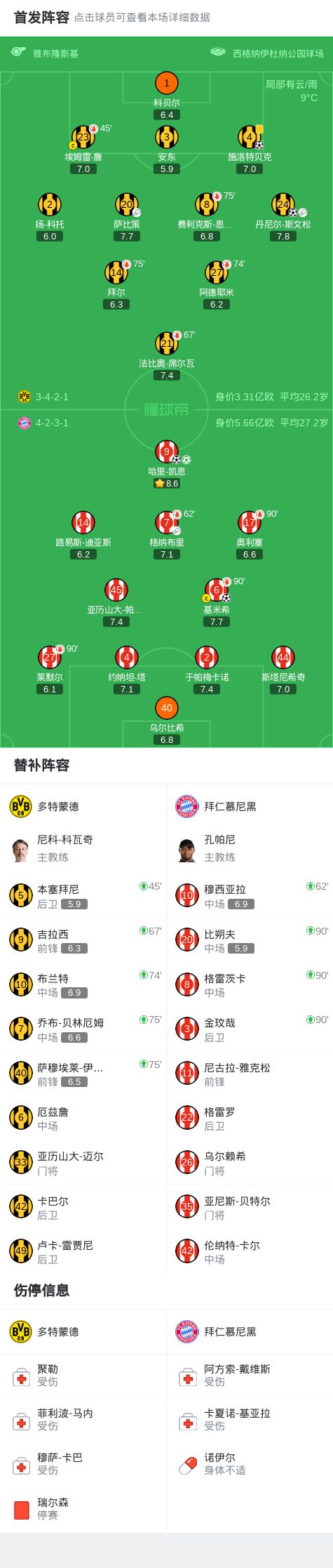 第70分钟,斯塔尼西奇造点,凯恩主罚命中,拜仁2-1反超比分