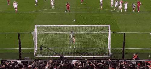 上半场补时阶段,索博斯洛伊制造点球,但萨拉赫主罚被扑,两队总比分还是1-1。
