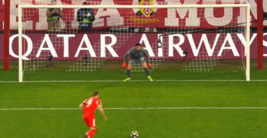 第25分钟,凯恩再次主罚,轻松罚进右下角,拜仁取得领先,1-0!