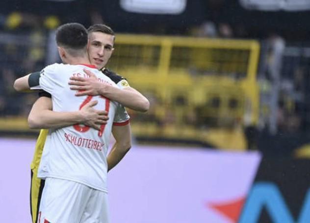 北京时间3月14日,德甲第26轮,多特蒙德2-0奥格斯堡。多特蒙德的尼科-施洛特贝克和奥格斯堡的凯文-施洛特贝克各自作为队长带领球队登场。