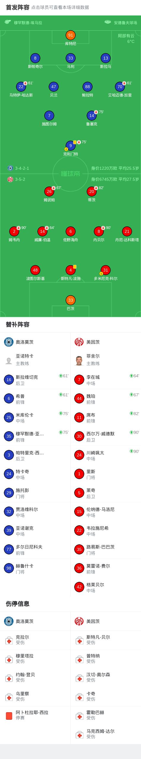 北京时间3月13日欧洲协会联赛 1/8决赛首回合,奥洛莫茨对阵美因茨。最终比分奥洛莫茨 0-0 美因茨。