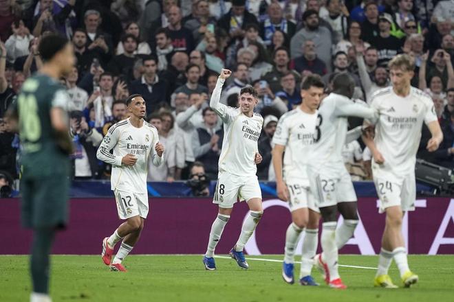 第20分钟,巴尔韦德盘过多纳鲁马之后小角度破门,帮助皇马打破僵局。第27分钟,维尼修斯直塞,巴尔韦德突入禁区小角度低射帮助皇马扩大优势。第42分钟,巴尔韦德挑球过人后上演帽子戏法。