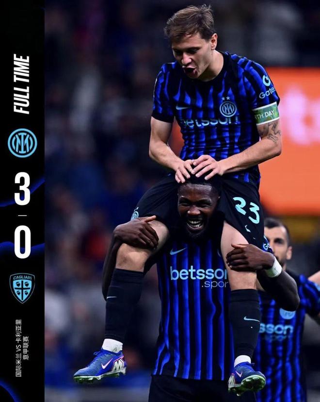 国米主场3比0完胜卡利亚里,蓝黑军团本赛季意甲夺冠稳了!北京时间4月18日,意甲第33轮,国际米兰主场3-0完胜卡利亚里。上半场略显沉闷,下半场国米开始发力,随着蓝黑军团突然提速,小图拉姆、巴雷拉、泽林斯基在下半场的三连击,直接打崩对手。